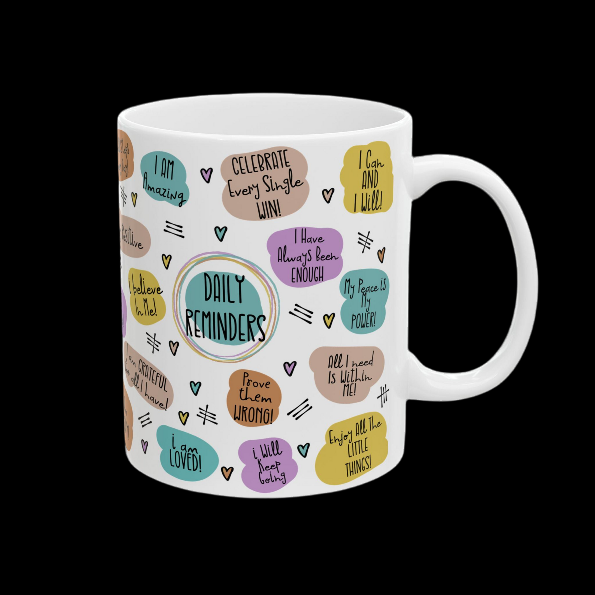 Embrace your mornings with this vibrant Ceramic Mug, designed to uplift and inspire. Perfect for coffee lovers and tea enthusiasts alike, this mug brings a splash of positivity to your daily routine. Its cheerful design radiates warmth, making it an ideal companion for reflection, motivation, or relaxation. Whether you're enjoying a quiet morning alone or catching up with friends, this mug fosters moments of joy and connection. It's a wonderful gift for anyone who cherishes self-care, making it a perfect choice for holidays like Christmas, birthdays, or just because. Indulge in your favorite beverages while adding a pop of color to your kitchen or office space.