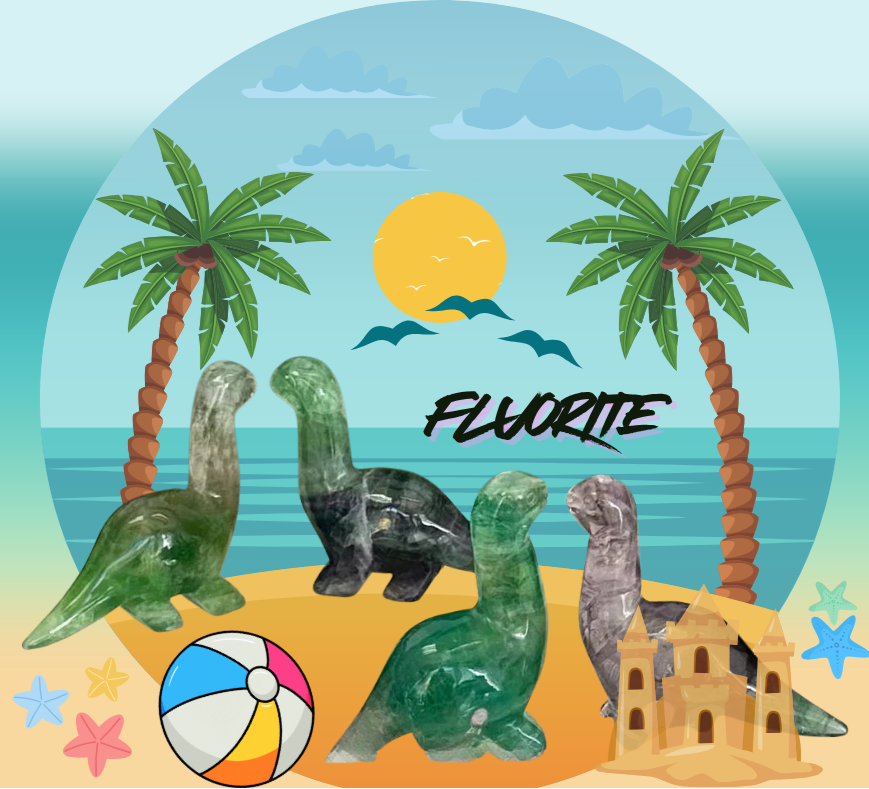 Natural Mix Crystal Dinosaurs: available in 1 Sodalite, 1 Fluorite, 1 Howlite, 1 Amethyst, 1 Rose Quartz, 1 Tiger, and 1 Black Obsidian. Roughly 2.7”x2.7”each.